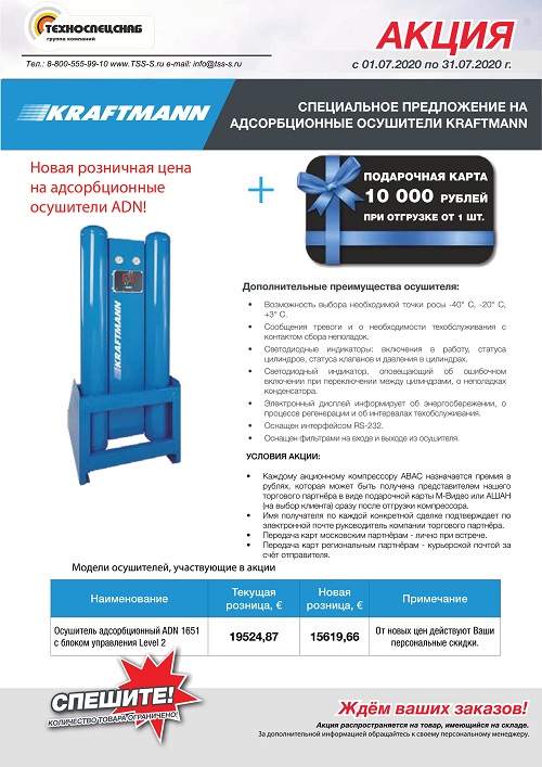 АКЦИЯ на адсорбционные осушители KRAFTMANN до 31 июля 2020 года
