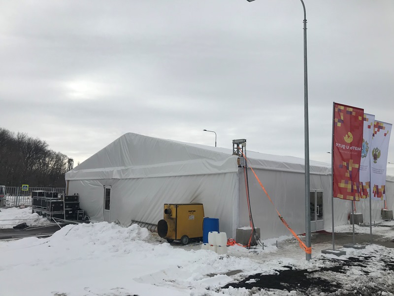 Для заказчика было важно, что бы в процессе прогрева помещения, на время проведения мероприятия был низкий уровень шума и от оборудования не исходил резкий запах гари и топлива.