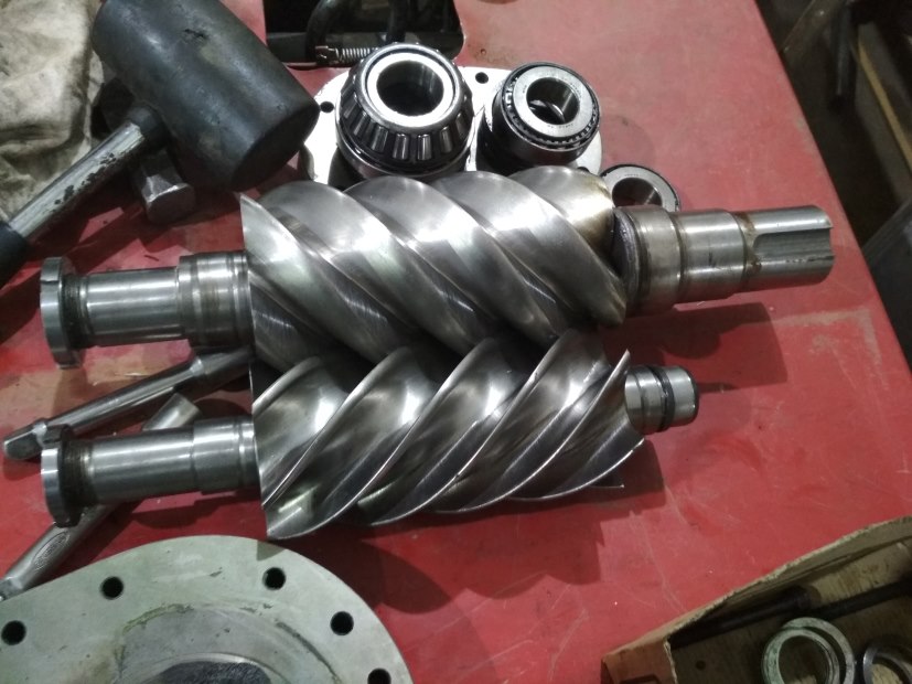 На фотографиях ремонт винтовой пары компресcора REMEZA.