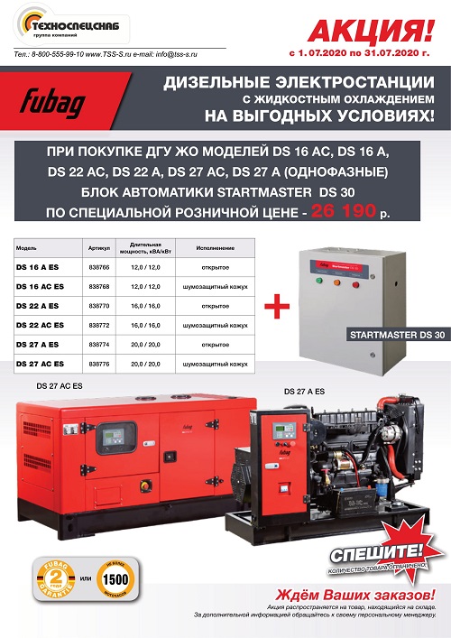 Только до 31 июля 2020 г. АКЦИЯ на дизельные генераторы FUBAG